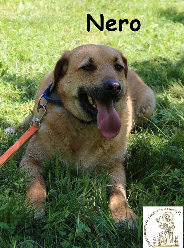 Sein Name ist Nero – doch wer ihn sieht, merkt sofort: Von „dunkel“ keine Spur. Sein Fell leuchtet hellbraun-golden, und auch sein Charakter passt dazu – freundlich, offen und voller Neugier aufs Leben.