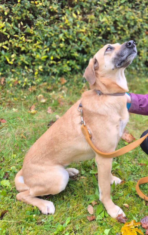 Draußen zeigt sie neugieriges, interessiertes Verhalten, läuft bereits sehr schön an der Leine und bleibt dabei erstaunlich gelassen – sogar an Straßen oder in Momenten, die für viele junge Hunde herausfordernd sind. Sie ist zuverlässig stubenrein, lernt ausgesprochen schnell und macht täglich sichtbare Fortschritte. Autofahren findet sie gut, nur für den Sprung ins Auto braucht es manchmal noch etwas Ermutigung. Insgesamt steht sie noch am Anfang ihres Hunde-1x1 und eignet sich perfekt für Menschen, die Freude daran haben, einen jungen Hund beim Wachsen und Lernen zu begleiten.