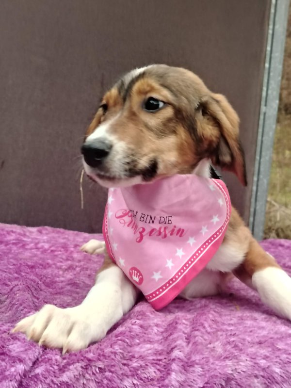 Buba ist ein schönes, aufgewecktes Hundemädchen. Sie ist welpentypisch verspielt, neugierig und menschenbezogen.