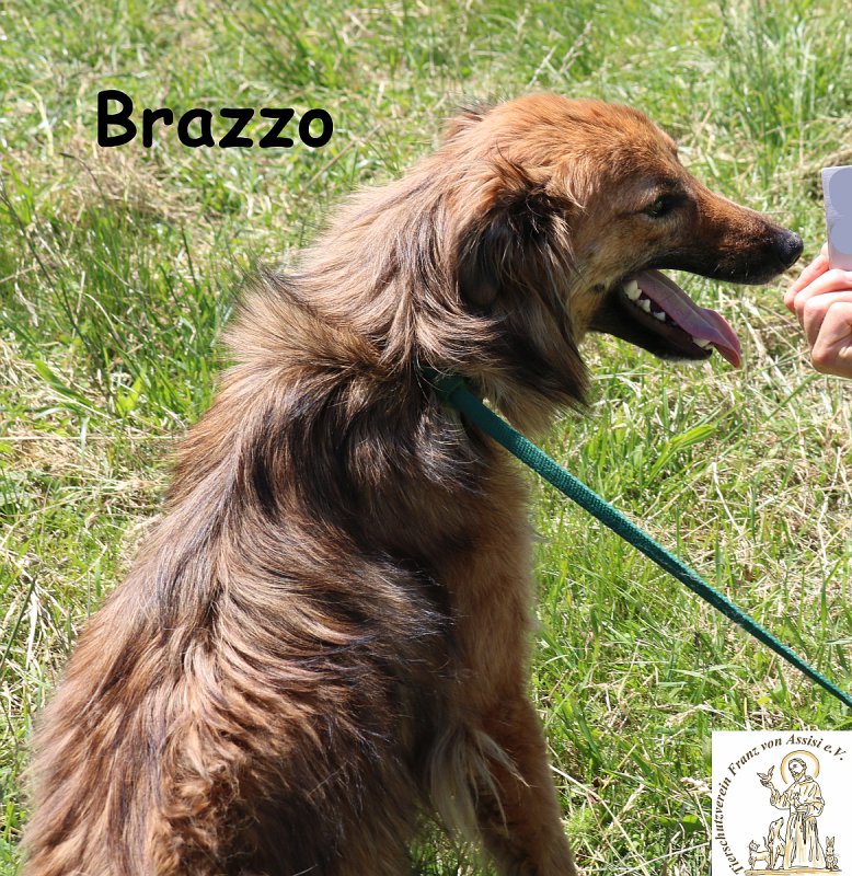 Natürlich muss er noch vieles lernen – wie man sich draußen in der großen Welt zurechtfindet, wie entspannte Spaziergänge an der Leine funktionieren und wie schön es ist, gemeinsam mit Menschen kleine Routinen aufzubauen. Doch gerade weil er so aufmerksam ist, wird er ein Hund, dem man mit Freude Dinge beibringen kann. Spaziergänge in der Natur, vielleicht kleine Ausflüge, gemütliche Nachmittage, an denen er einfach nur dabei sein darf – all das sind die Momente, die für Brazzo Glück bedeuten.
