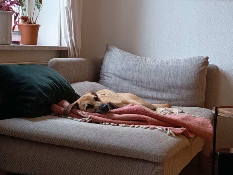 Es gibt Hunde, die kommen voller Energie in einen Raum und wollen sofort alles gleichzeitig erleben. Und dann gibt es Daniela. Sie ist eine junge Hündin, die kurz innehält, bevor sie sich auf Neues einlässt – nicht aus Unsicherheit, sondern aus einer angenehmen, ruhigen Aufmerksamkeit heraus. Sie schaut, versteht, und kommt dann Schritt für Schritt näher. In dem Moment, in dem sie merkt, dass alles passt, zeigt sie ihr weiches, herzliches Wesen und genießt die Nähe zu ihren Menschen sehr. Wer mit ihr auf dem Sofa sitzt, merkt schnell: Daniela ist eine wahre Genießerin.
