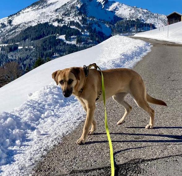 Draußen zeigt sie neugieriges, interessiertes Verhalten, läuft bereits sehr schön an der Leine und bleibt dabei erstaunlich gelassen – sogar an Straßen oder in Momenten, die für viele junge Hunde herausfordernd sind. Sie ist zuverlässig stubenrein, lernt ausgesprochen schnell und macht täglich sichtbare Fortschritte. Autofahren findet sie gut, nur für den Sprung ins Auto braucht es manchmal noch etwas Ermutigung. Insgesamt steht sie noch am Anfang ihres Hunde-1x1 und eignet sich perfekt für Menschen, die Freude daran haben, einen jungen Hund beim Wachsen und Lernen zu begleiten.